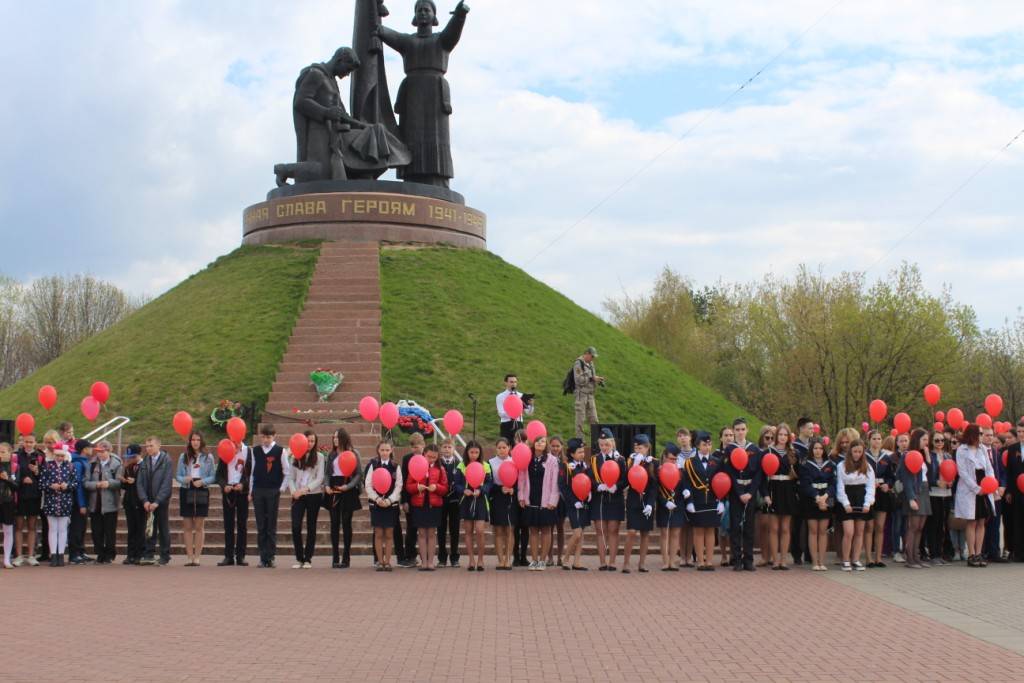 В продолжение торжественного мероприятия состоялась акция "Георгиевская лента", в ходе которой школьники сложили из заранее подготовленных фрагментов одну большую георгиевскую ленту, которая протянулась по аллеям Парка Победы, а ученики 10Т класса выпустили в небо красные шары.