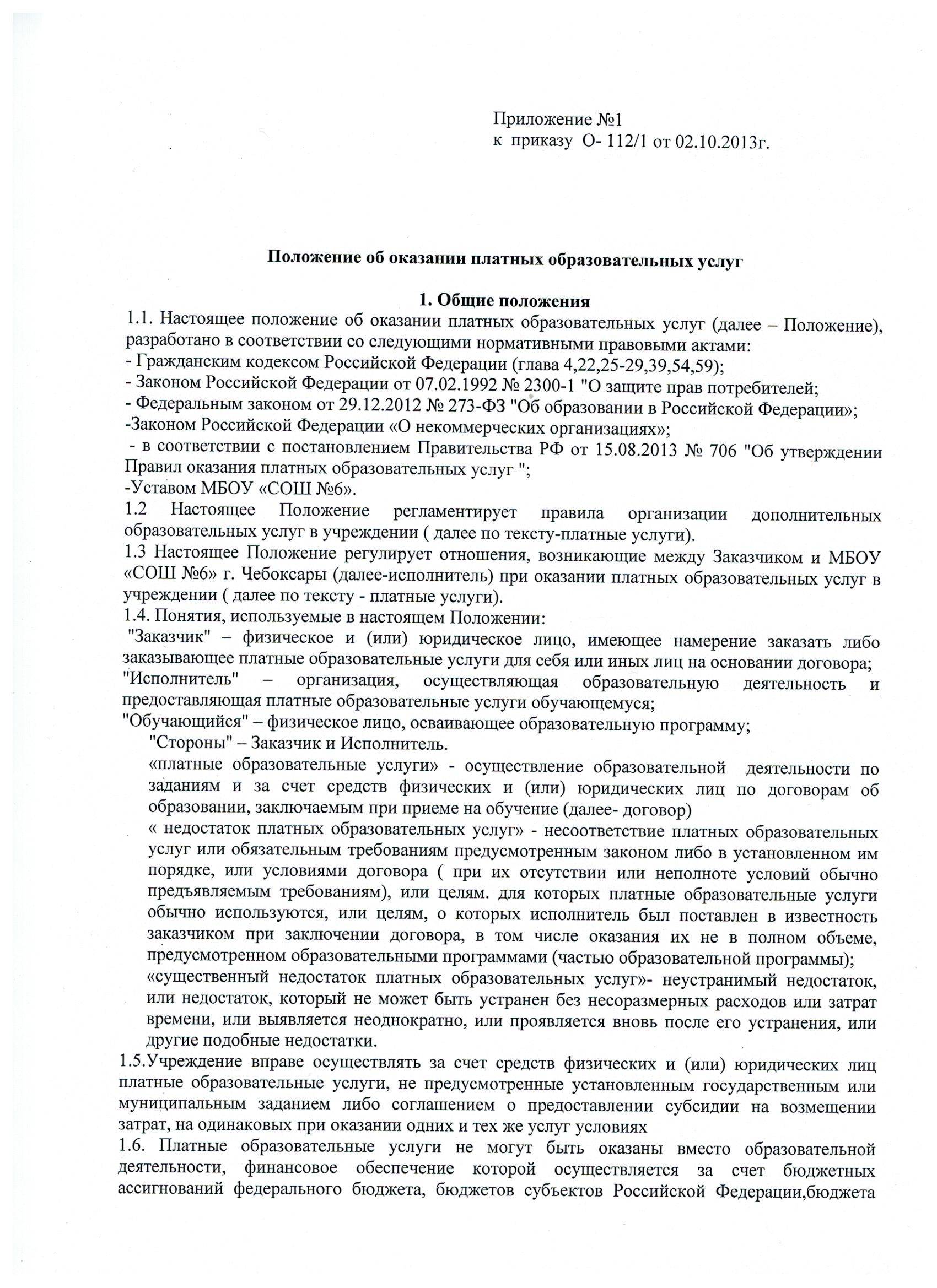 Положение об оказании платных дополнительных образовательных услуг (лист1, лист2, лист3, лист4)